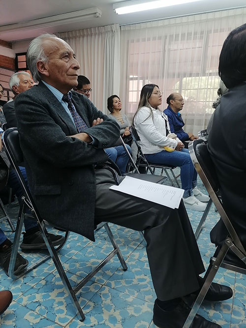 Irma Carolina Romero, secretaria de la Sghel Tlaxcala, presentó una breve reseña de Juventino Sánchez de la Vega, “nació en Tepeyahualco, municipio de Tlaxco el 2 de junio de 1911, su obra poética fue reconocida y premiada en nuestro estado y en otros escenarios del país, después de una vida fructífera como docente, declamador, escritor y poeta cerró su ciclo vital el 28 de junio del año 2002 y desde entonces empezó a vivir para la historia, pero a los poetas se les honra leyendo poesía”, por lo que leyó un fragmento del poema de Juventino Sánchez de la Vega, titulado «La Epopeya de las Rosas del Tepeyac».